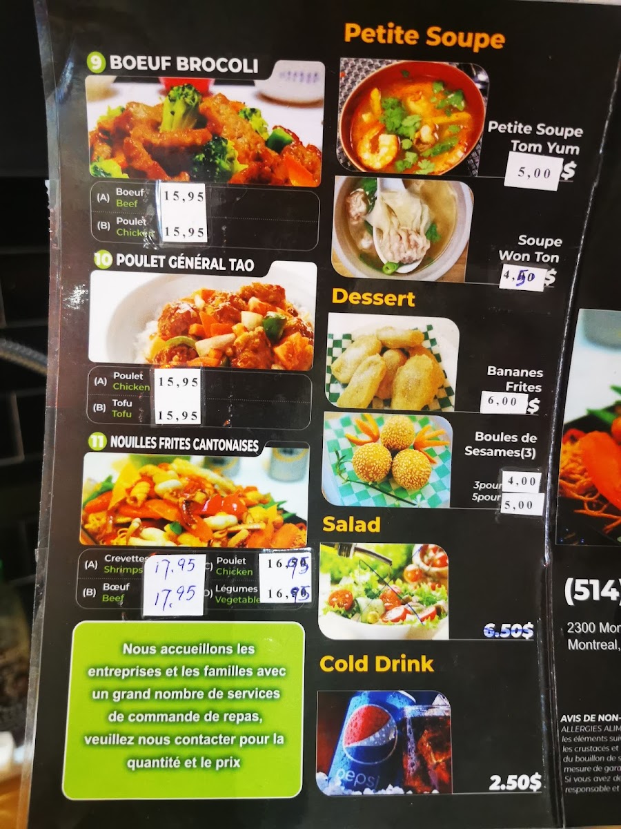 Don’t miss the unique twist on a beloved Canadian classic with the Poutine au Poulet General Tao, topped with vibrant peppers and a drizzle of sesame, for CA$18.95. For a lighter option, their Chow Mein is a must-try, offering a colorful medley of sautéed vegetables and savory soy sauce at just CA$12.00.